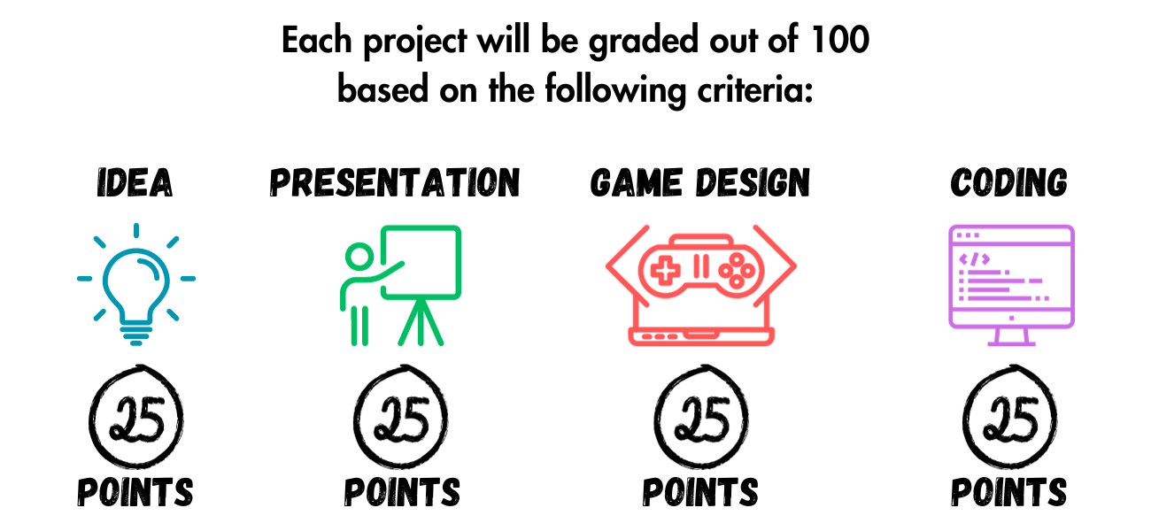 Objective: Learn the basics of game coding, design thinking, and project building.